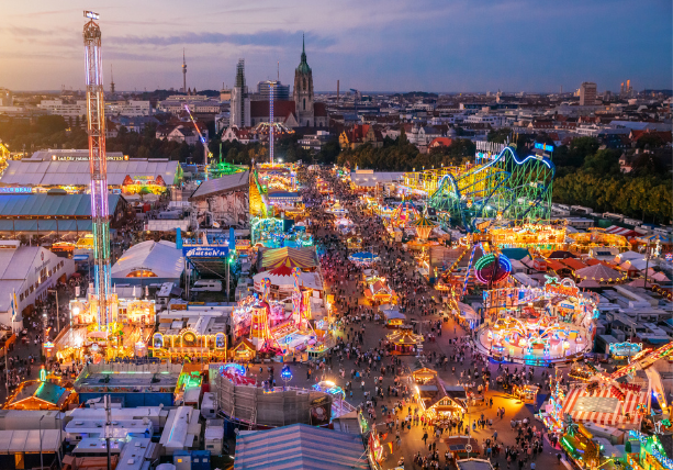 Oktoberfest was initiated in 1810, when citizens of Munich were invited to a public celebration of the marriage of Bavarian Crown Prince Ludwig to Saxon-Hidburghausen Princess Therese. The celebration spanned 5 days and included a horse race! Oktoberfest included the horse race for 150 years, with the last race taking place in 1960. As the years went on, the annual celebration grew larger and more elaborate, with Germany’s first roller coaster making its debut at Oktoberfest 1908!