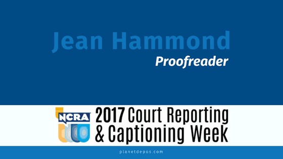 In keeping with the celebration of NCRA’s Court Reporting & Captioning Week, it seemed only fitting that we shine a light on an integral behind-the-scenes component of transcript preparation – proofreading. Jean Hammond is a proofreader living in Groveland, FL, with 20 years in the legal community as a legal secretary/assistant.