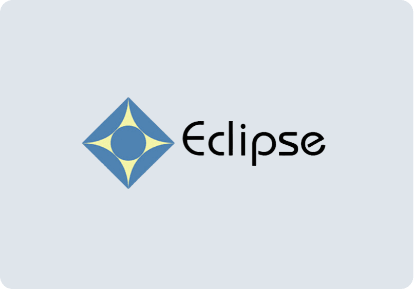 A blue and green diamond-shaped logo with a central circle appears to the left of the word "Eclipse" in black text on a light gray background.